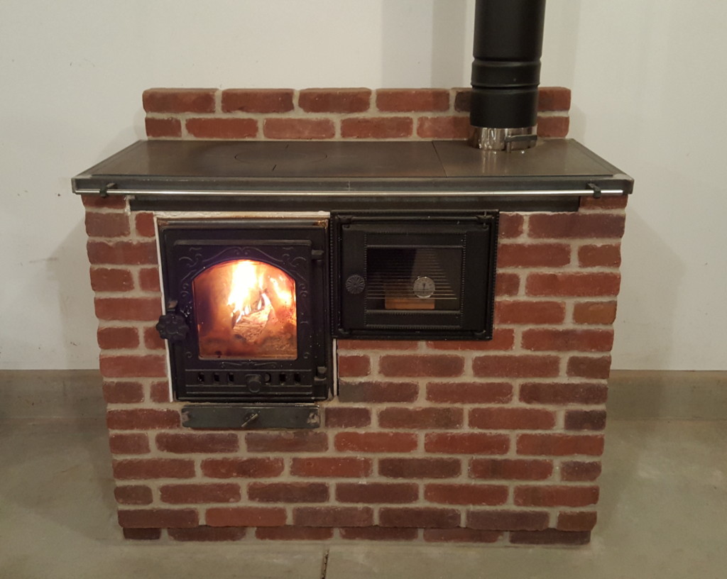 The Cabin Stove is a compact wood-burning stove for heating and cooking. It uses a mix of clean, efficient combustion, and heat exchange strategies, which provide both immediate heat via the cooktop as well stored heat through the channels inside the brick work. Effectively, it converts wood into warmth and good food.