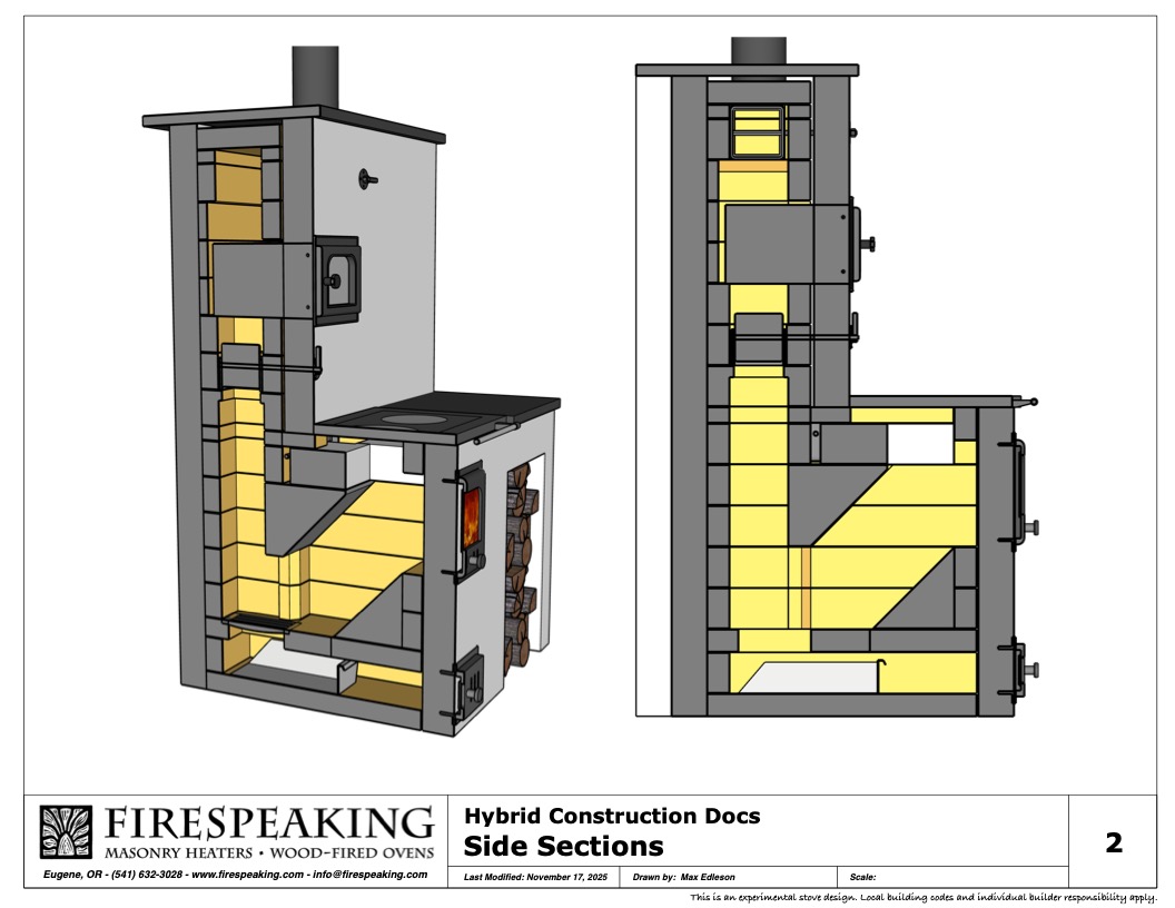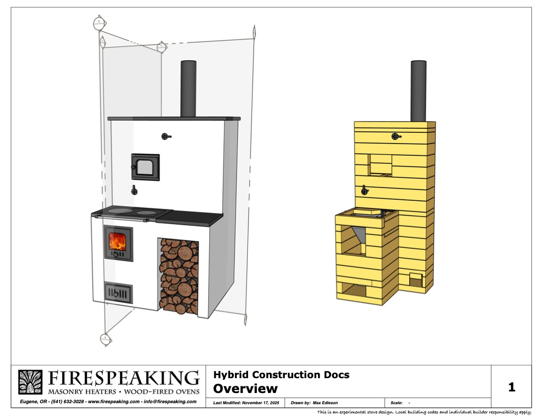 This page serves as a central organizational hub for the Cookstove Masonry Heater Hybrid project. The design incorporates elements of rocket mass heater, batch box heater, and masonry heater design into one clean burning, multifunctional stove. It uses pivoting bypass dampers to toggle between flow configurations inside the heater, specifically between mass heating and cookstove functions. Nicknames for this project are “the Hybrid” and the “Mothership”.