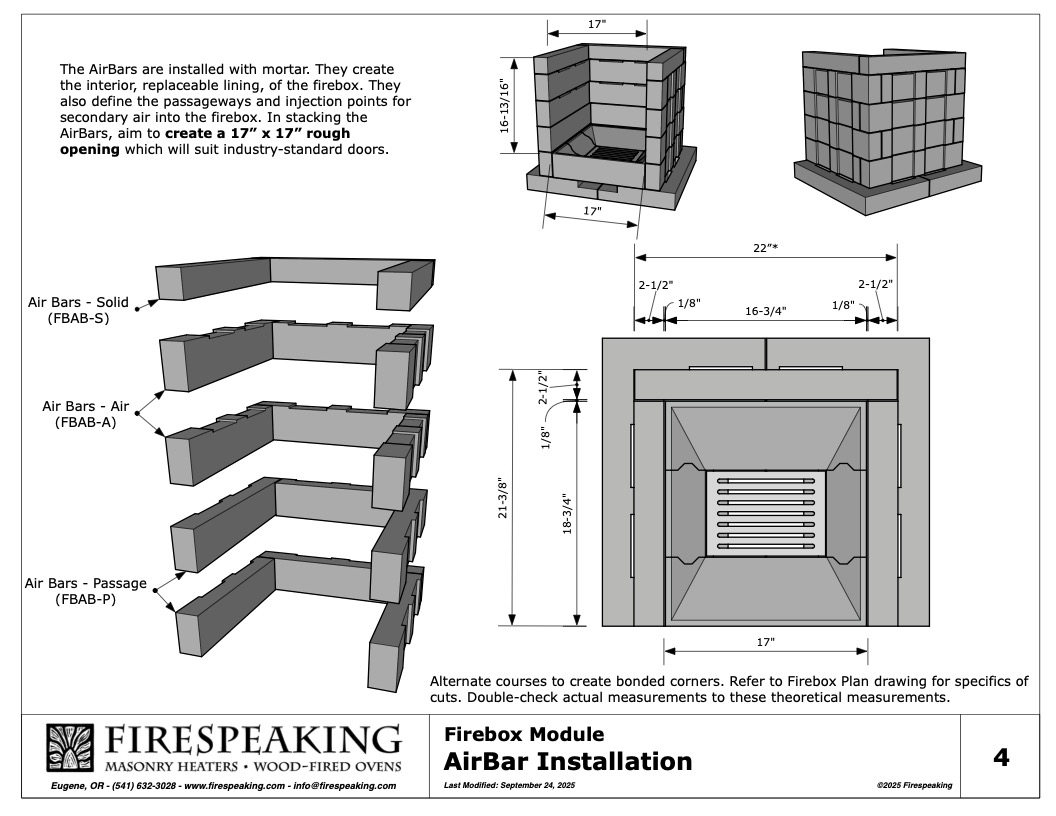 All of the specialty items you need including castable refractory parts, hardware, gasketing and instructions to efficiently build a state-of-the-art masonry heater. All shipped to you on one pallet and combined with firebrick and facing masonry from a local masonry yard. Streamlined procurement and accurate estimating.